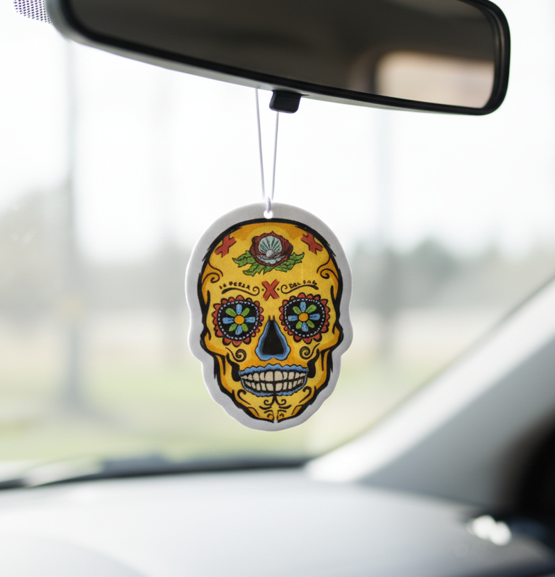 Deze decoratieve geurhanger voor aan de achteruitkijkspiegel van je auto is vormgegeven als een kleurrijke suikerschedel, geïnspireerd op de Mexicaanse Día de los Muertos. Op de schedel staat de tekst ‘La Perla del Sur’, Spaans voor De Parel van het Zuiden. Daarnaast zijn de drie Andreas-kruizen uit het Bredase stadswapen en een parel in het ontwerp verwerkt.